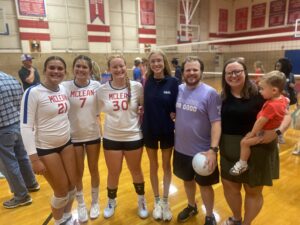 A really cool thing happened, though, when my son Henry and I went to a McLean Volleyball game. Henry got to tag along to this game because my husband was working, and no grandparents were available to hang out with him. We walked in while a group of our middle school girls was waiting for their game to begin, and Henry was greeted with a chorus of “OH MY GOSH HI HENRY!” He was delighted that so many were saying hello and knew his name. He was so excited to be greeted so warmly for just showing up. His smile was as wide as our students’ were because it feels good to know that people show up for you, to know that people know you and see you. It warmed my heart to see our students show up for him in this way.